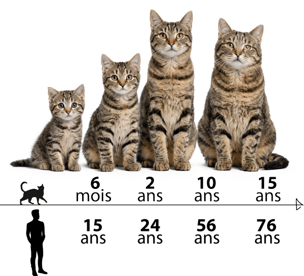 Établir un comparatif aide à mieux accompagner un chat senior. Un félin de 15 ans affiche une maturité comparable à un humain de 76 ans. Son corps demande alors plus de douceur.